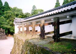 ![]() 飫肥城大手門。1978年再建 樹齢百年以上の飫肥杉を使用し釘を使わない「組み式」という手法で建てられている |