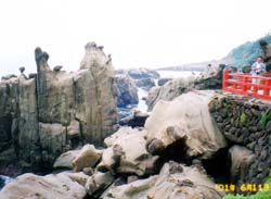 ![]() 洞窟の前面の断崖、奇岩の眺め。 |