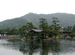 | 養翠園 文政元年より同八年に亘り紀州第十代藩主徳川治宝候が水軒御用地内に造営せられしもの・・・・ 庭は蓬莱山水にして池泉回遊、舟游式であります。大小の池(3500坪)を中心として、その周辺に立華ずかしの老松廻らせ遠く章魚頭姿山を背景となし、海水を湛えたる池面に其の影を写し、誠に雄大にして幽遼なる徳川中期の大名庭園であります。池の中心に島を作り、中央に守護神祀り南方に太鼓橋架し・・・・・ 庭の西方に養翠亭ありて池に臨み老松に囲まれた其の景観は昔日の俤を宿して居ります。 養翠亭は数奇屋建ての御茶屋の構造にて総建坪約80坪にして原形を其のまま良く保存せられ・・・・・(国指定文化財『名勝』養翠園パンフレットより抜粋) |