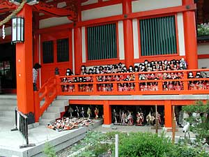 | 淡島神社 加太の岬に立ち、朱塗りの堂宇も鮮やかです。医薬の祖神スクナヒコナノミコトを祭り、婦人病治癒や安産にご利益のある女性の神様として信仰されてきました。境内には無数の人形が奉納されています。雛流しなど多彩な祭りも有名。(休暇村紀州加太のパンフレットより) |