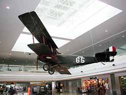 | デンバー空港には、実物の古い飛行機が天井に展示してあります。 |