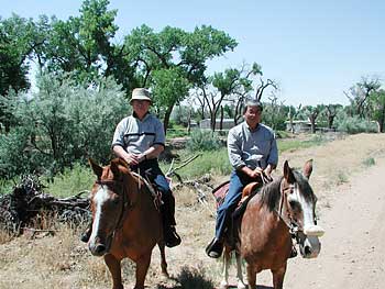 | 6月24日(火) ホースライディング(乗馬) 生まれて初めて、馬に乗りました。 現場裏の飼育場で練習して、車で15分くらいのところのリオグランデ川のほとりに行きました。 |