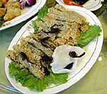 右端は何かのフライの上に「サソリ」の唐揚げが乗ってました、味は「イナゴ」のようでした。