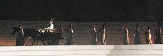 スクリーンに中国語・英語・日本語・韓国語で解説してましたが、画面より舞台に目が行き、よく判りませんでしたが孔子の物語のようで、実際の馬車で本物の馬が出てました。東西の文化を紹介していたようです。