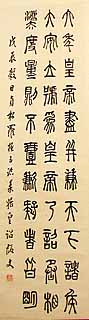 同時、国内統治するため、度量衡の統一と全国共通の文字を定めた。 当時、秦の地方で使われた書体は大篆で、(現存する最古のものは石鼓文である)字画が複雑で書くには不便であったので、丞相李斯は始皇帝に命じられ、大篆を改良して新しい書体「小篆」を作成した。
