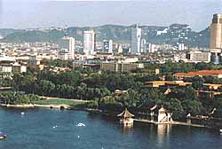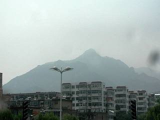 | 泰安は中国五岳の一つである泰山観光の拠点です。ロープウェイ等を利用して登山しますが、約半日の行程になるため、遠くから眺めるだけにして省略しました。 |