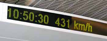 ![]() リニアモーターカー(上海磁浮列車) ![]() 車内の速度表示 |