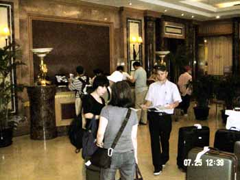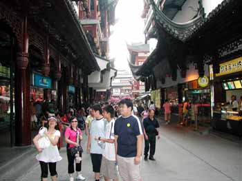 上海市内は渋滞していてホテル到着は13:30頃(現地時間)。 ホテルは「上海天賜酒店公寓」アパート方式で上海の中心に位置している。部屋は2寝室1ダイニング、キッチンも付いている。セキュリティは厳重だが少し使いつらかった。休憩の後昼食と市内観光に出る。 昼食はラーメンを食べようと近所のお店、9〜10元のラーメンは口に合わなかった。 その後、老街を通り豫園に向う。 この時の気温は39℃猛烈な暑さだった。 |