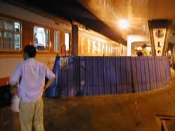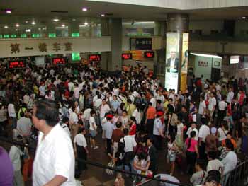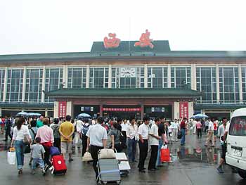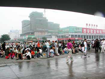 ![]() 西安発16:30 快速寝台列車の4人用個室。 四川省西都あたりで大雨による洪水で列車ダイヤは大幅に遅れているようだ。 その影響で、駅前広場、駅構内は大勢の人で溢れていた。 雨も降っていたので、駅前城壁の蔭にも列車待ちの人々でいっぱいであった。 約40分遅れで列車は出発した。 |