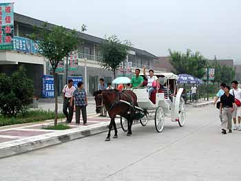 ![]() 広い公園になっていて、駐車場から1号坑迄、行きは 電気自動車、帰りは馬車に乗った。 |
