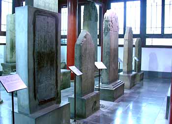 ホテルチェックアウト後9:00出発 西安碑林博物館に向う。 西安碑林博物館 宋の時代に建てられた孔子廟を利用した博物館で、歴代書家の石碑を数多く収集、展示している。 中国最大の書道芸術の宝庫といわれている。 現在七つの陳列室があり1000点の石碑が陳列されている。 ほとんどの石碑はガラスケースに納められていて、写真撮影は出来なかった。 入場料45元 |