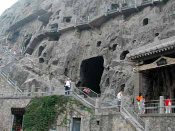 古陽洞は、竜門で初めて開削された石窟なので「竜門第一窟」とも呼ばれている。竜門石窟のなかで、もっとも仏教的な内容に富み、書道芸術にも優れた洞窟である。洞内は柵で囲まれて立ち入り禁止となっていたが、特別許可(料金350元・¥5500円)を払って拝観した。勿論撮影禁止であったが・・・・・ |