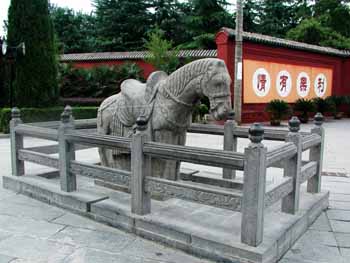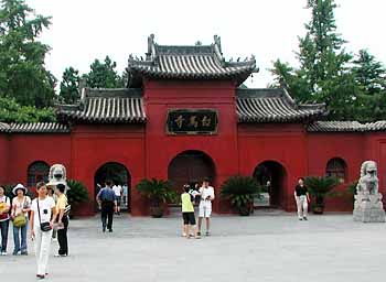 白馬寺は中国仏教の発祥の地と言われている。 後漢の時代、インドから摂摩騰、竺法蘭という高僧が白馬に経典と仏画を持って洛陽に入り、朝廷に迎えられた。紀元68年に白馬寺は、皇帝・明帝が彼らのために建立したものでのちに、白馬寺と呼ばれるようになった。(後漢書・西域伝) |