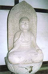 石造地蔵菩薩坐像 重要美術品(国指定) 総高 219cm 像高 120cm 安国寺境内の地蔵堂に安置されています。 光背裏面に元徳2年(1330)の銘があり、県内の石仏在銘の3番目に古い貴重な鎌倉時代の作例。 当時の金宝寺の隆盛を示す一つでもあります。 |