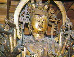 木造千手観音立像 鎌倉時代 市指定重要文化財 像高:107.6cm 福禅寺の本尊で長らく本堂の厨子に安置された秘仏である。 優麗な面想が魅力的である。 |
